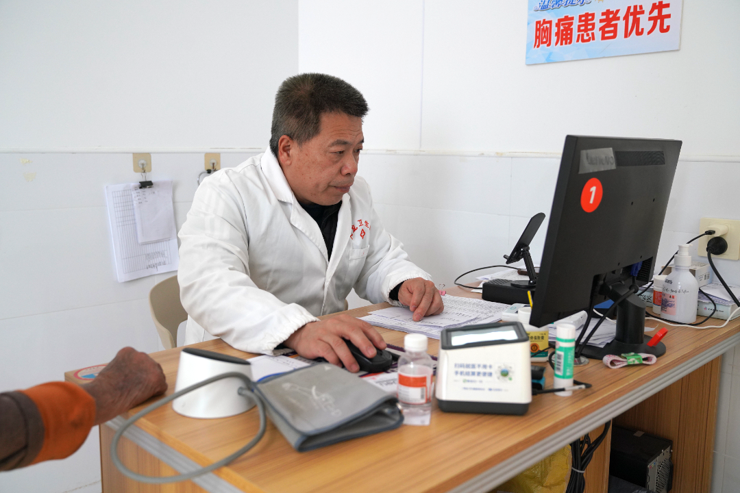 2月23日,在泰宁县大龙乡中心卫生院里,熟悉的问候声再次响起。医生李伟熟练地拿出血压计进行诊断。