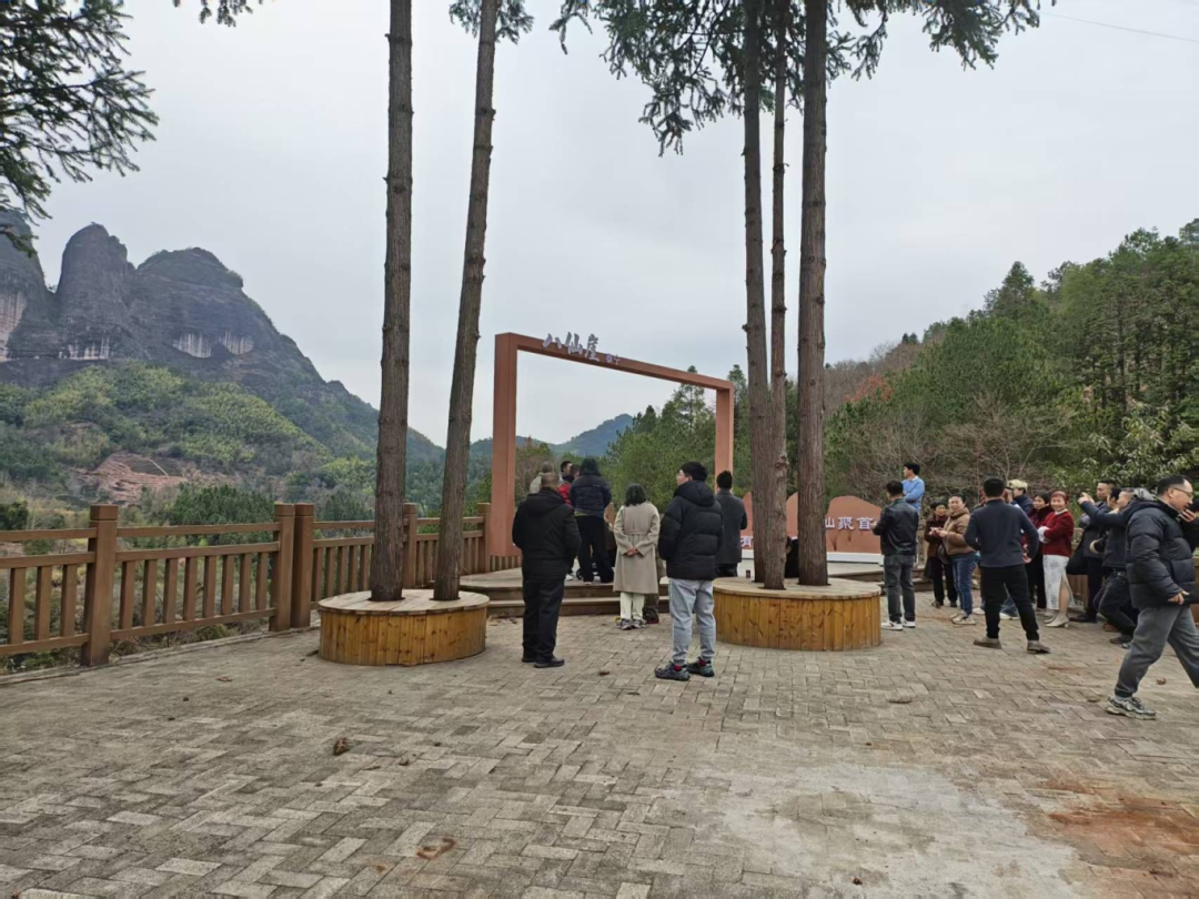来自湖南的游客李女士刚在印心崖下拍完打卡照,喜笑颜开:“在城市里过年总觉得缺了点年味,今年,我和丈夫选择以旅游的方式过年,这里的老房子和砖墙就是最好的背景板,让我找到了记忆中中国年的味道。” 八仙崖:丹霞奇景焕新彩 午后,阳光洒在八仙崖的赤壁丹崖上,光影变幻。“来,帮我拍一张——我要侧卧着,假装躺在画里!”几位年轻游客轮番上阵,或振臂欲飞、或与同伴错落站立,在相框前变换着各种造型。这个打卡点,春节期间成了社交平台上的“出片圣地”,不少游客专程驱车前来。