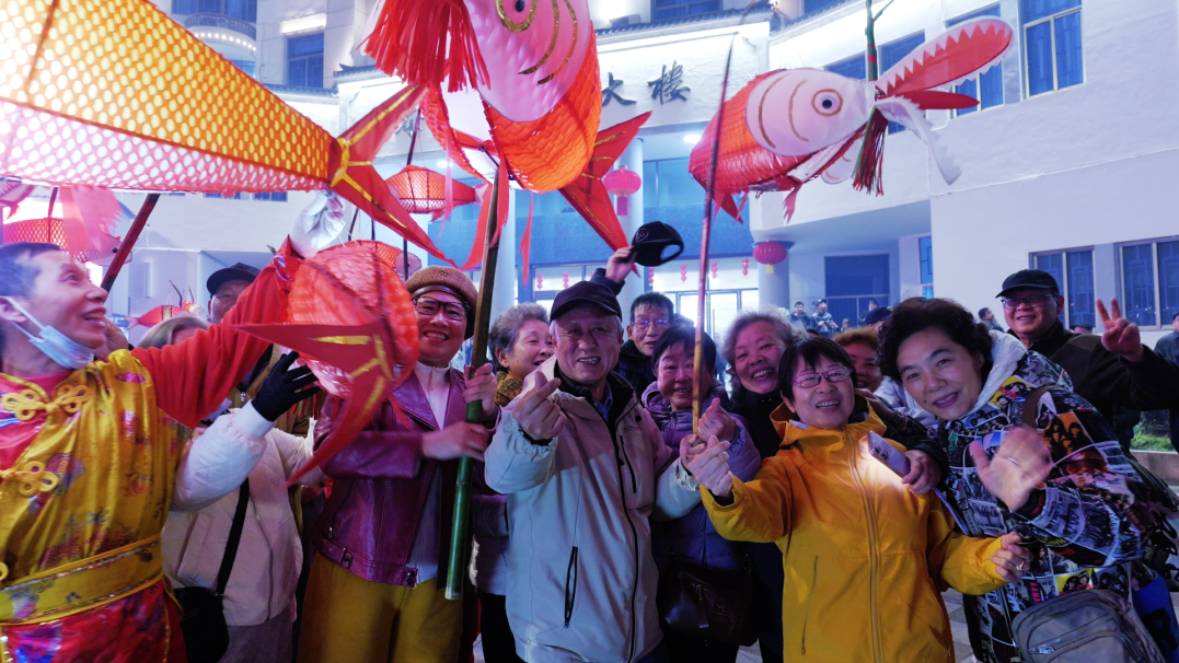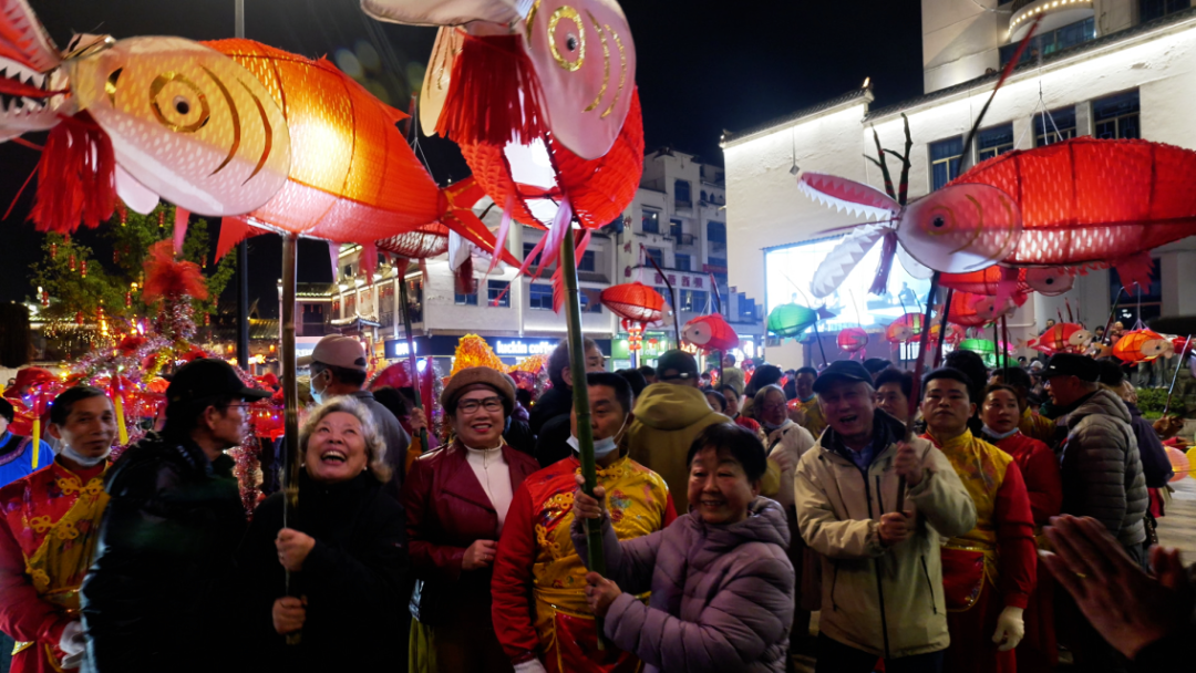 本次活动集结了上青桥灯、下渠百福灯、大田蚯蚓灯、新桥赤膊灯等9大特色灯组,各展风姿、交相辉映。在如织的人潮中,手持小鱼灯的上海游客们显得格外兴奋,来自上海的游客们将“福气”收入行囊,跟着蜿蜒的龙灯队伍穿街走巷,追寻最传统的中国年味。