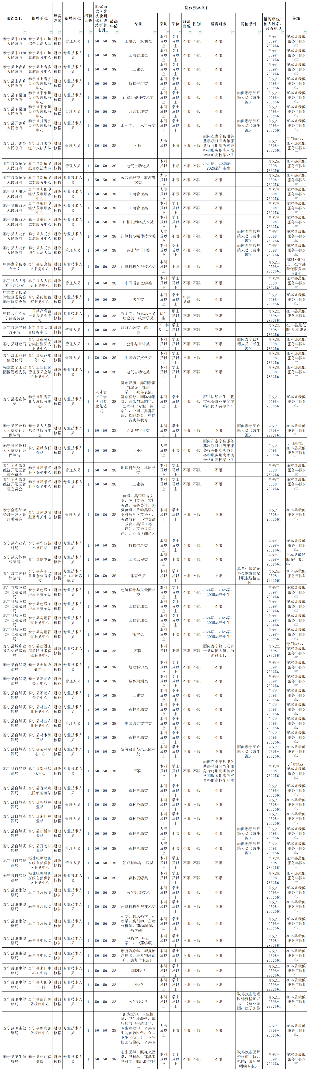 招聘单位、岗位、人数 本次共计划招聘事业单位工作人员63名。 2026年泰宁县事业单位公开招聘工作人员岗位信息表 (点击图片可放大查看)