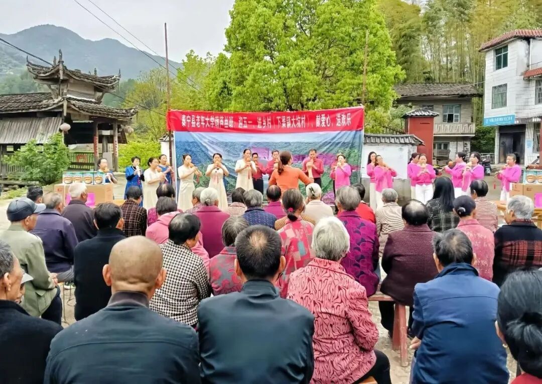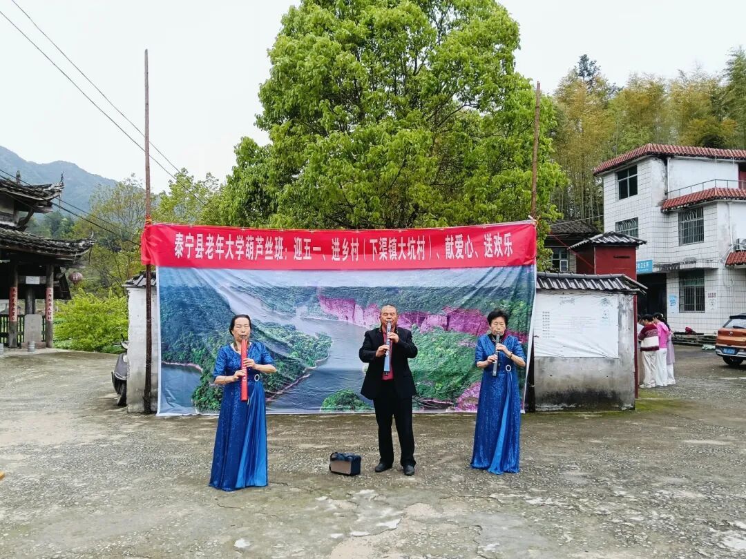 4月8日上午,泰宁县老年大学葫芦丝班“迎五一、进乡村、献爱心、送欢乐”慰问活动在下渠镇大坑村仁寿桥桥头广场举行,现场气氛热烈,吸引了众多村民驻足观看。