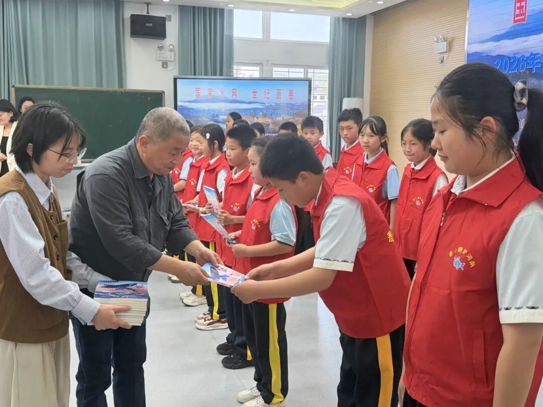 活动现场,“委员河湖路长”们向师生和群众分发生态保护宣传资料,普及河湖管护知识;播放了宣传片《文化闽江》,生动展现了家乡水美山秀的自然风貌与人文底蕴,让大家直观感受生态之美。专题分享环节,特邀当代知名作家、县政协委员萧春雷带来著作《会飞的鱼》,走进课堂为大家分享泰宁丹霞地貌的独特景观、古城的深厚人文底蕴与闽江的灵动生态风貌,从文学视角解读生态保护的意义,传递守护自然的责任与担当。