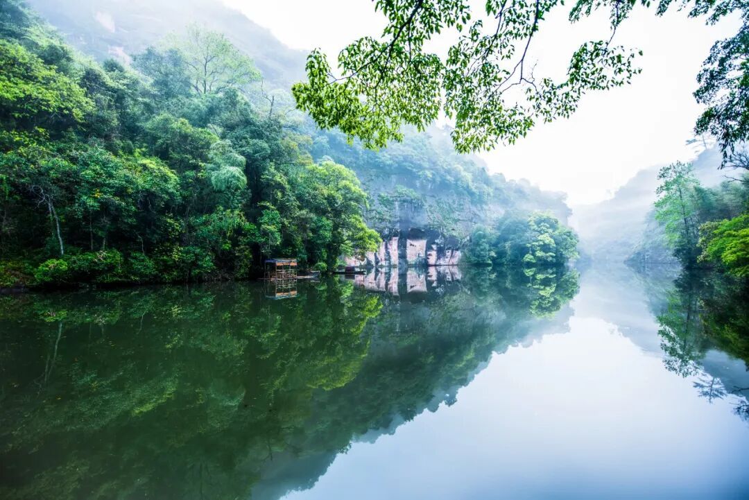 九龙潭堪称泰宁丹霞山水微缩明珠,集湖、溪、谷、岩、峰于一体。幽峡蜿蜒,潭水碧绿,千米水上一线天惊险奇绝,船行其间如入秘境。这里白日可泛舟赏翠、徒步观崖,夜晚更有沉浸式光影夜游,丹崖映光、水影如梦,是泰宁必打卡的清幽仙境。