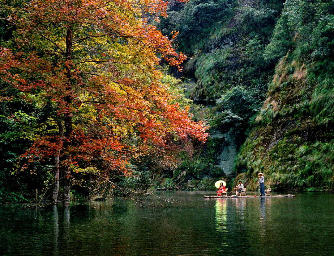 上清溪藏于深山幽谷,以 “九十九曲、八十八滩” 闻名,被誉为华东第一漂。溪流蜿蜒穿行于丹霞峡谷间,两岸原始林木葱郁,壁立千仞,鸟鸣空谷。乘竹筏顺流而下,弯转景新、滩险趣浓,尽显野幽奇趣,仿佛闯入一幅流动的千年山水画卷。