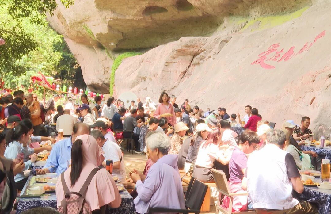 同时,景区还准备了特色长桌宴,游客们围坐于丹霞洞穴之中,品尝地道泰宁美食,在热闹的氛围里,沉浸式体验泰宁特色民俗风情,独特的游玩体验赢得了现场游客的一致好评。