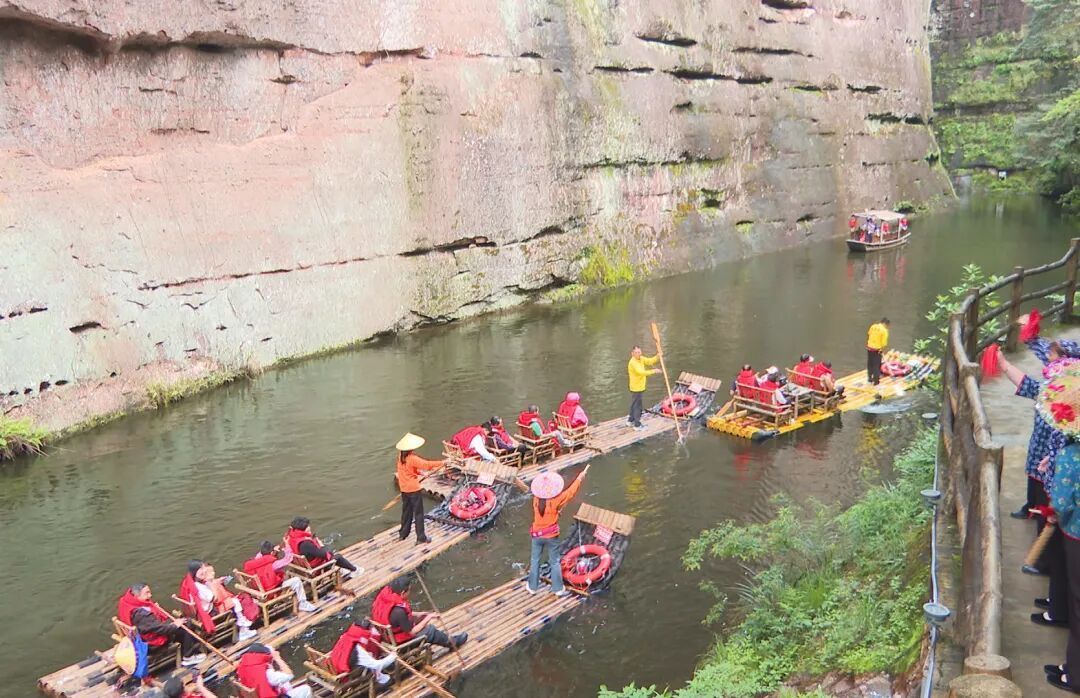 游客 苏芹: “我感觉这长桌宴不错,很有特色,来这一趟非常值得,我下次还会再来。” 长桌宴后,游客乘船游览九龙潭,泰宁山歌表演者在竹筏、临水栈道上接续献唱,歌声与流水声相映成趣。大家泛舟青山绿水间,尽情观赏壮美丹霞地貌,在如画风景中,尽享文旅融合带来的惬意游玩体验。