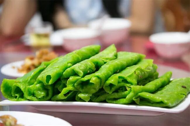 蔡朝阳 摄 这抹绿色,可不只是风景, 泰宁人还把它揉进了餐桌。 碧玉卷, 用韭菜汁与糯米制成碧绿色面皮, 卷入笋丁、肉丝、木耳…… 一口咬下去,软糯清香, 春天的味道在嘴里“炸”开。