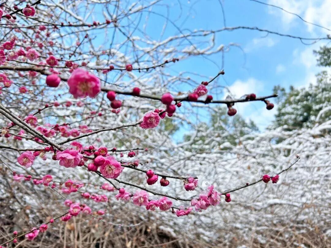 秋日 桂香满城,细碎金蕊随风飘落,空气里都裹着温柔甜香。 冬日 寒梅傲雪,点点嫣红映着状元文化广场,清冷又动人。