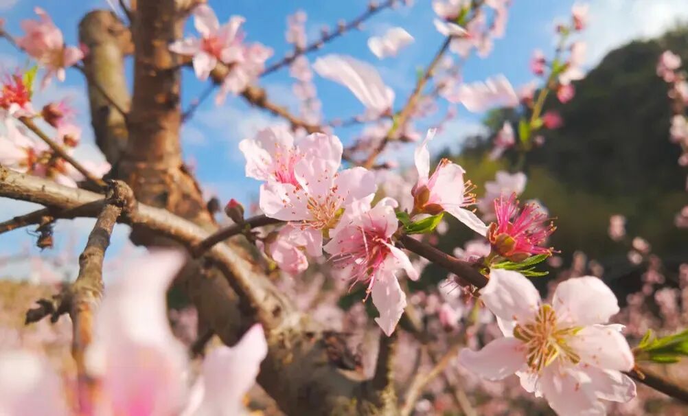 春日 繁花次第开,把山水晕染成流动的画卷,桃花粉、梨花白缀满枝头,与碧水丹山相映成趣。 夏日 荷风送香,一池清莲亭亭玉立,碧绿荷叶托着粉嫩花苞,清新又雅致。