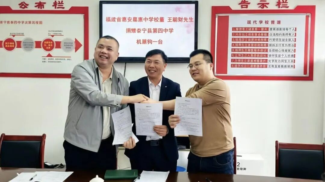 智能机器狗进校园 爱心赋能科创教育——惠安嘉惠中学校董王聪财向泰宁县第四中学捐赠科创设备